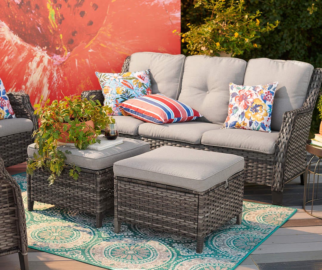 Of course you do. After the house, I turned my gaze to the backyard. I had dreamed of an oasis, a place to lounge and read books, a place to gather friends under the stars. I could be a good person if I had a place like that. I could be welcoming, gracious, and relaxed. I could be happy, if only I had the Rockbridge Gray All-Weather Wicker Cushioned Patio Sofa & Ottoman Set by Real Living.